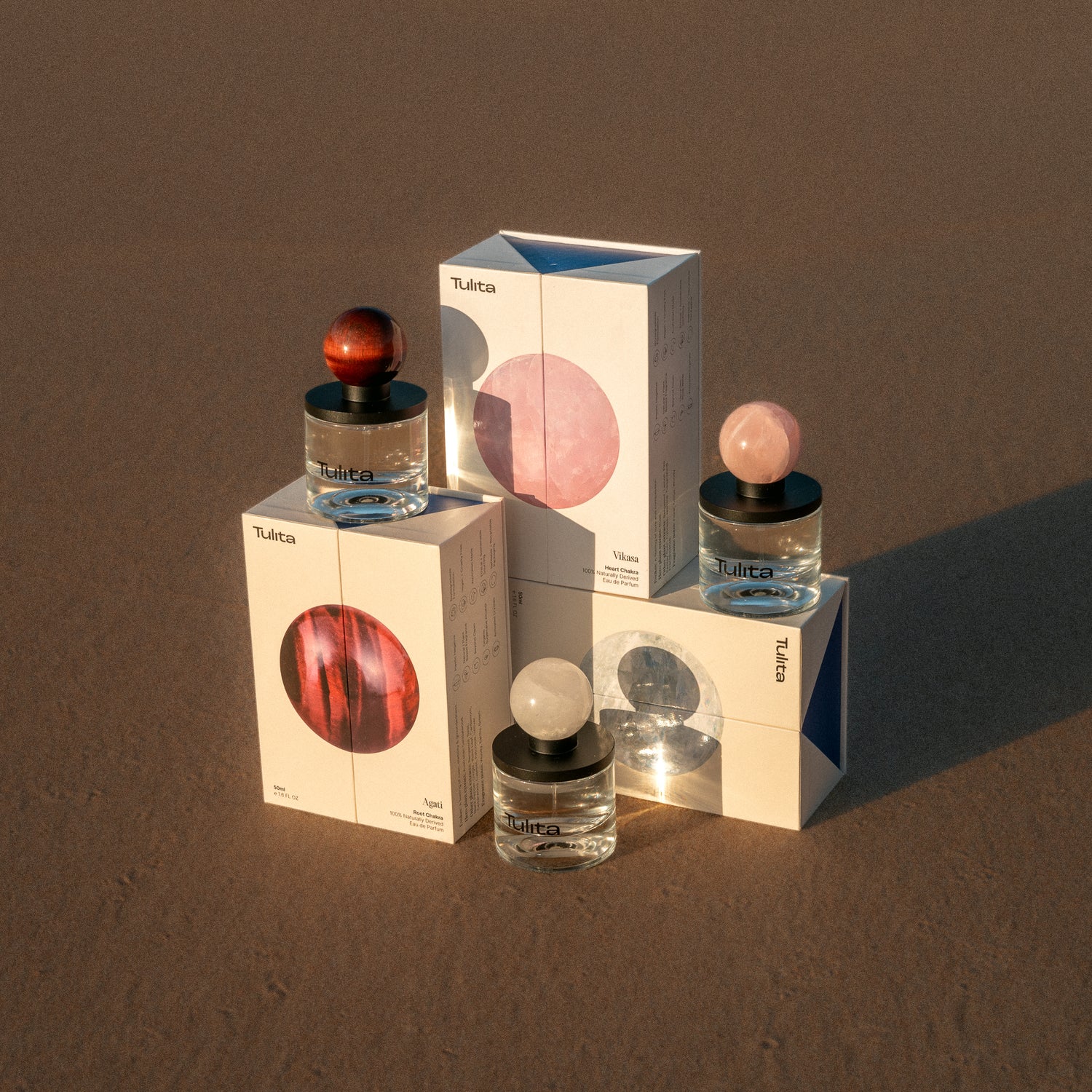 Adorned with a hand-carved clear quartz crystal cap, Divya channels transformative energy to the Crown Chakra, enhancing spiritual clarity and awakening a sense of purpose. This 100% naturally derived fragrance is crafted with organic sugarcane ethanol and biodegradable formulations, reflecting Tulita's commitment to ethical and sustainable practices.